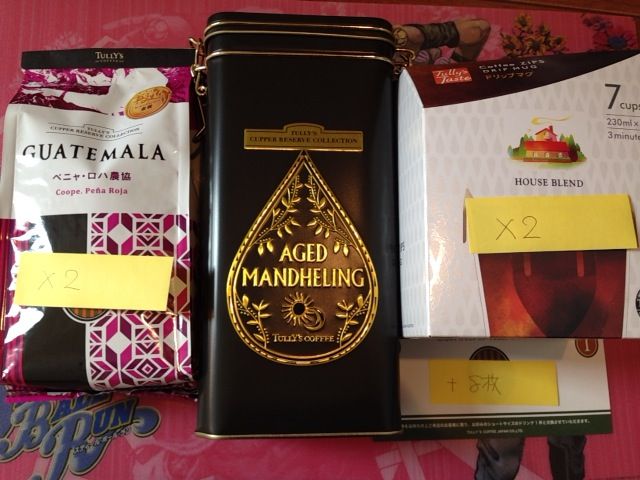 ということで、1万円福袋は幻となったが、私のタリーズコーヒー5000円福袋は以下のようになった。![]()