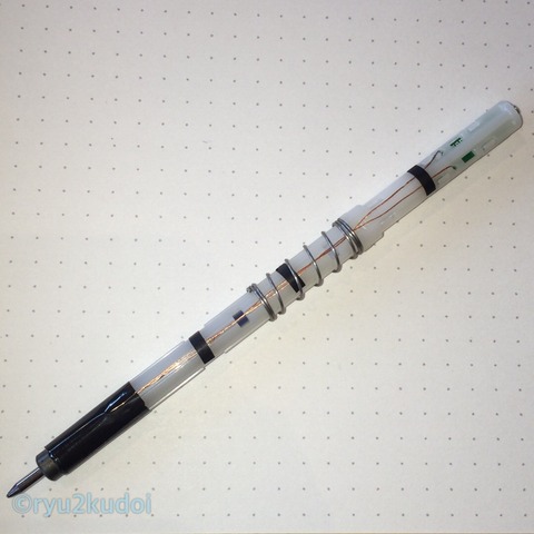 軸に銅線がセットされており、上部の電子基板?から、ペン先のコイルまでつながっているのが見えます。