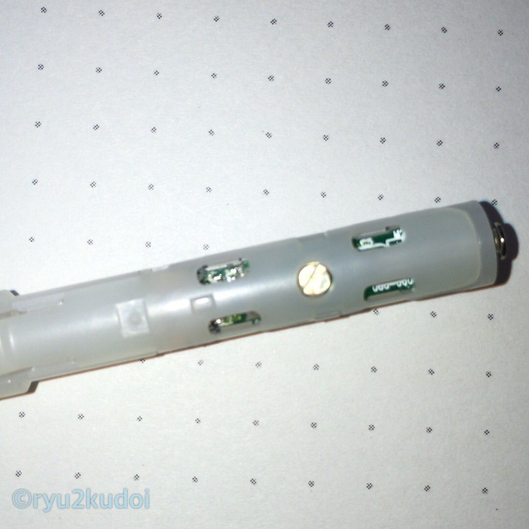 使っている間に、中がどうなっているのかとても気になったので、本体は分解すると元通りに出来そうにないため、専用ペンの方を分解してみました。