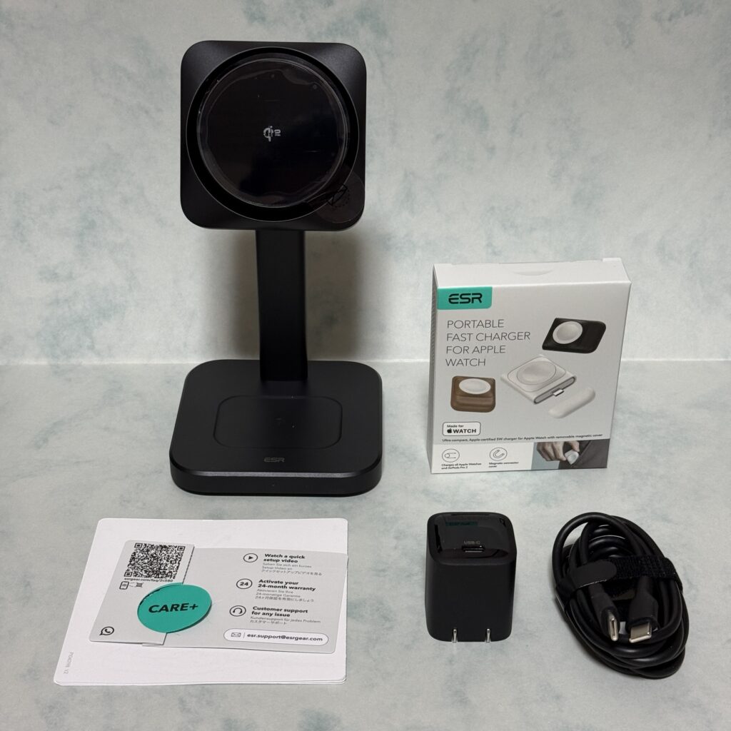 内容物は上記のようになっています。Apple Watch充電器は、単体で発売されているものをドッキングできるようになっています。よく考えられていますね。Apple認証も取得されているので、安心して使用できます。