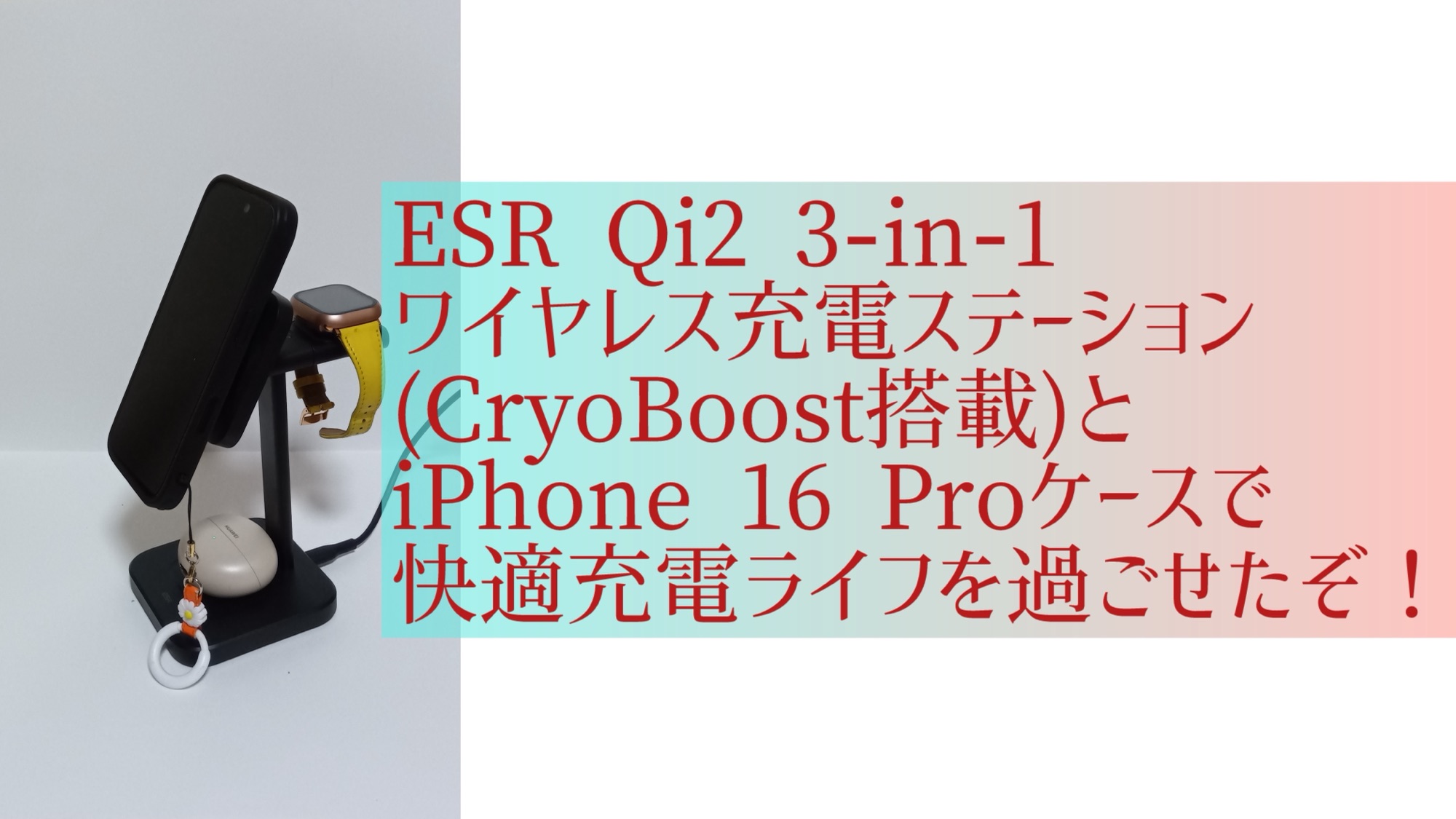 今回はESRさんからご提供頂いた、ESR Qi2 3-in-1 ワイヤレス充電器(CryoBoost搭載)とiPhone 16 Proケースを紹介します。